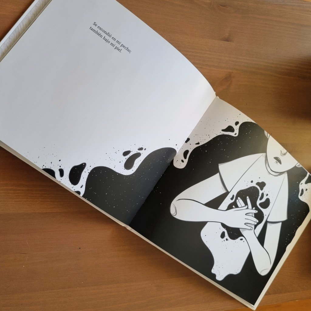 Casi sin pensarlo, lo tomé. Las ilustraciones eran sencillas, pero hicieron eco inmediato en mí. Justamente hablaban de esa sombra que nos acompaña, que a veces parece pequeña y otras crece tanto que vuelve todo oscuro. Me vi en esa historia, en ese momento de la vida en que una empieza a mirar la sombra, a intentar entenderla, enfrentarla, calmarla y darle forma. Porque, de alguna manera, ¿quién no se ha encontrado con ese significado metafórico alguna vez?